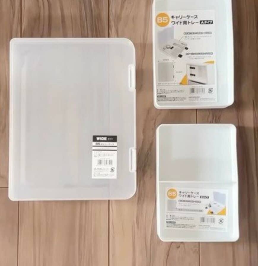 今回の動画では、セリアのA4キャリーケースワイドとA4キャリーケースワイド用トレーを使って小物をスッキリと収納します。