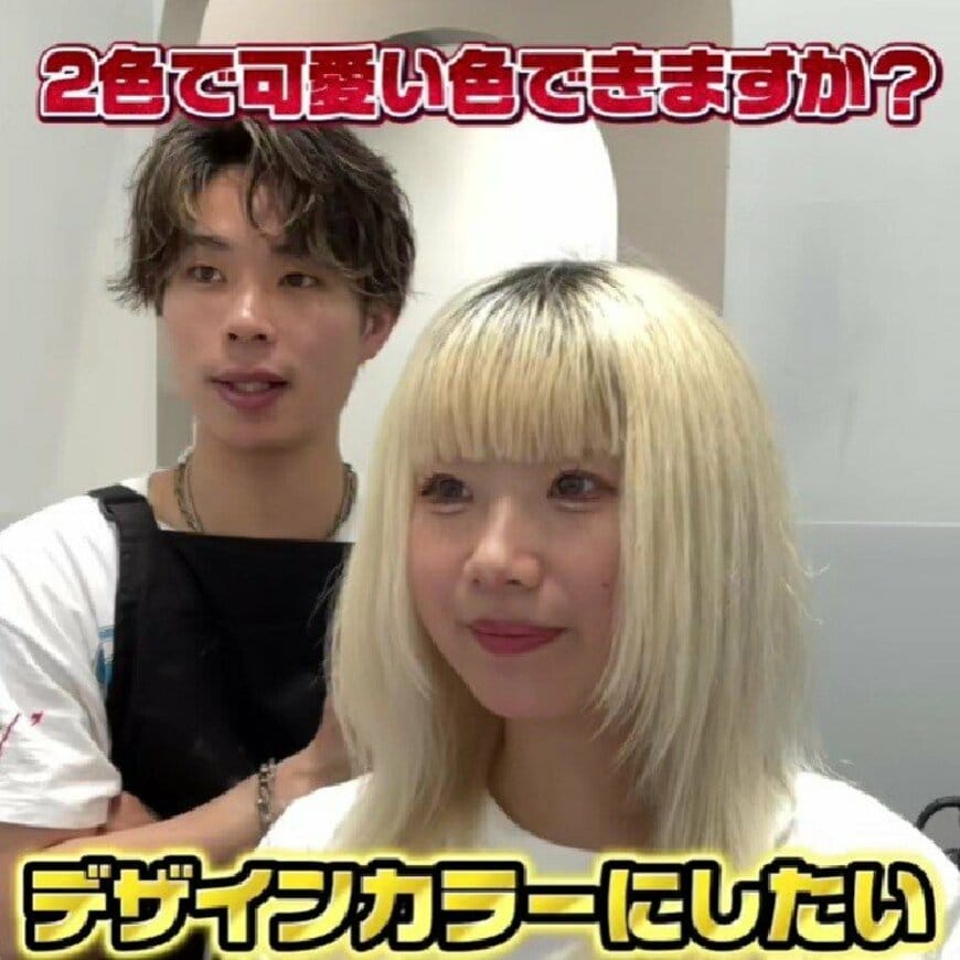 金髪の女性は、2種類のカラーを入れてイメチェンしたいと来店しました。