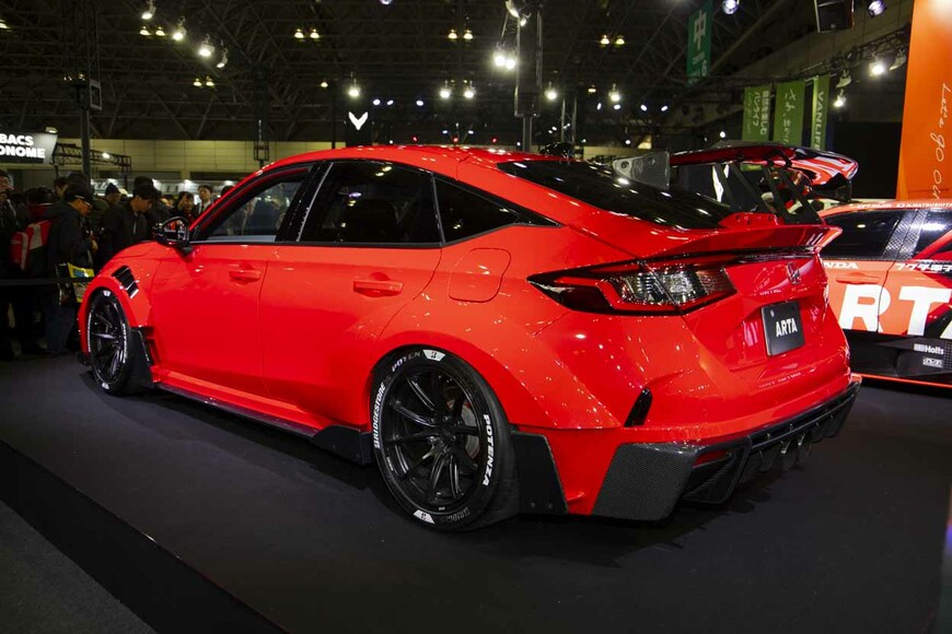 最大の特徴は、GT500マシン「ARTA MUGEN CIVIC TYPE R-GT」の造形を彷彿とさせるワイドボディキットです。