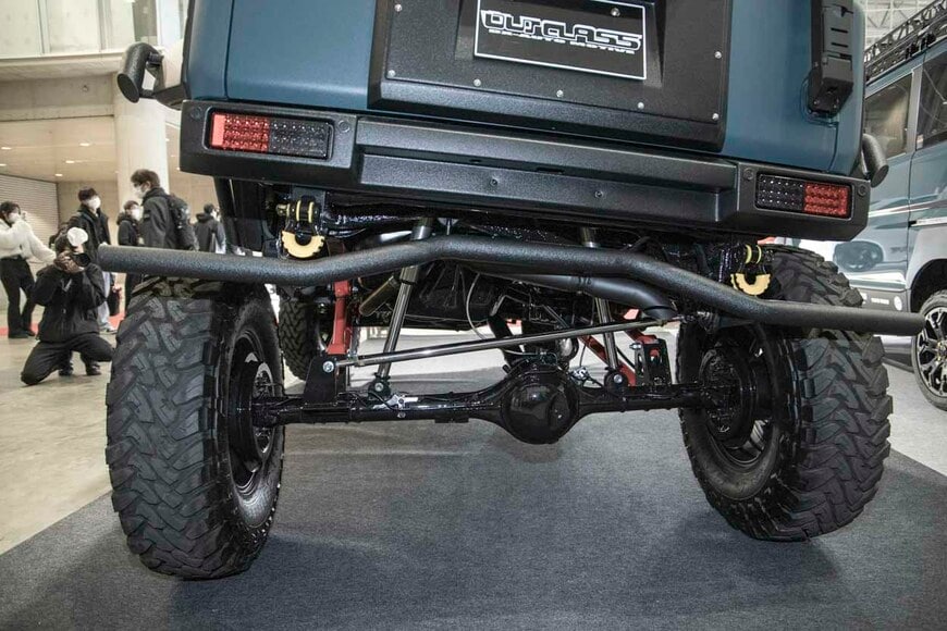これにより、タイヤが上下に大きく動く圧倒的なストローク量を確保し、見た目だけでなく、悪路走行を本気で想定した「走れるノマド」に仕上げられています。