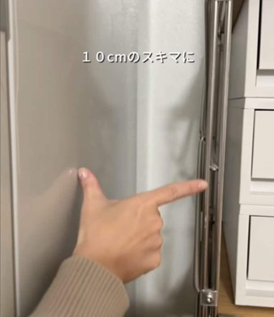 1. 【キッチン収納】冷蔵庫横の隙間に収納を作る!