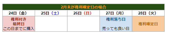 ※権利付き最終日:株主がその株式を保有することで株主優待などの株主権利を受けることができる最終売買日
