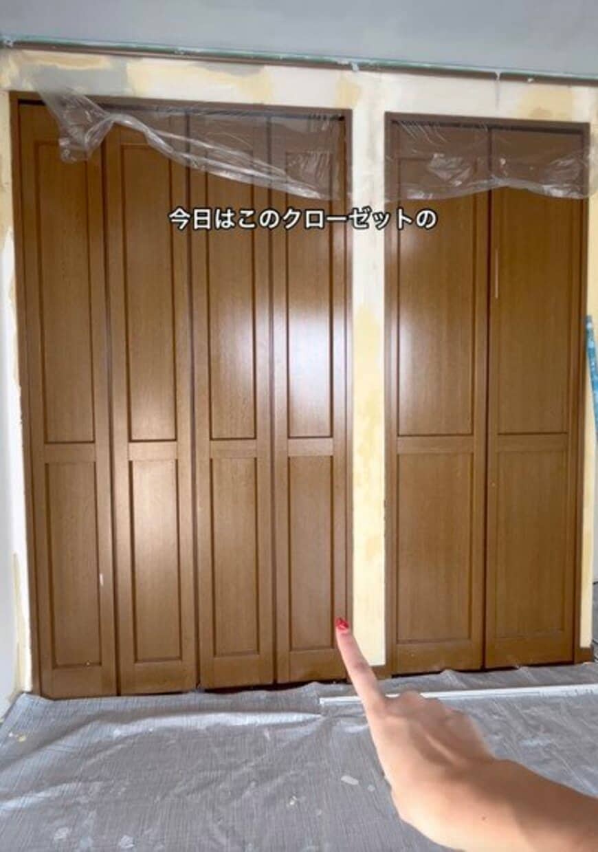 今回の動画では、クローゼット扉を塗装しておしゃれなグレーの扉に大変身させます。