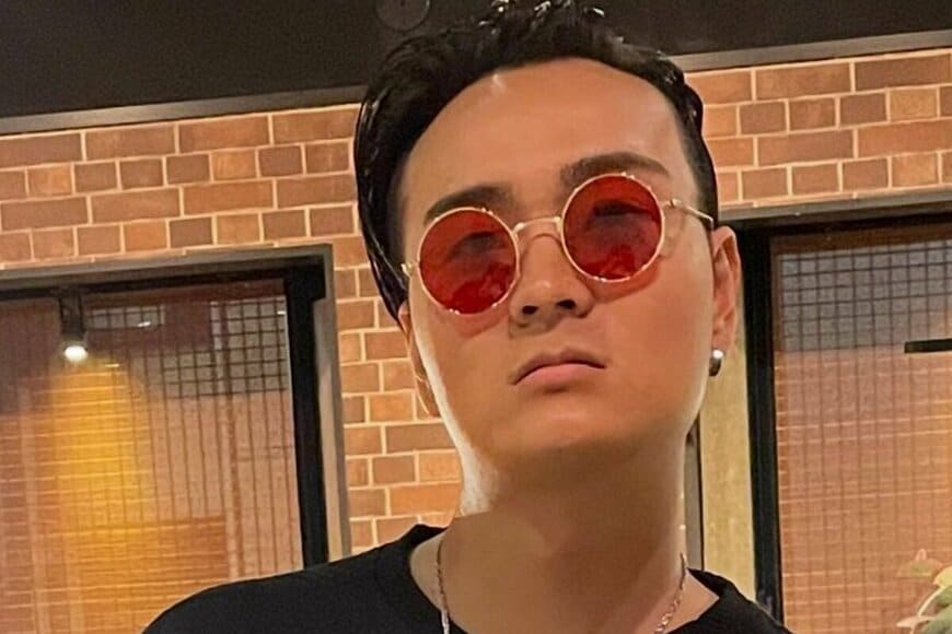 赤いサングラスにシルバーのアクセサリーをまとった、迫力のあるファッションが印象的です。