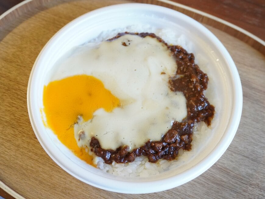 「MOKUBAZA監修 とろ~っと卵黄ソースとチーズソースのキーマカレー」(税込645円)は、原宿の人気店「MOKUBAZA」の看板メニューを再現したものです。