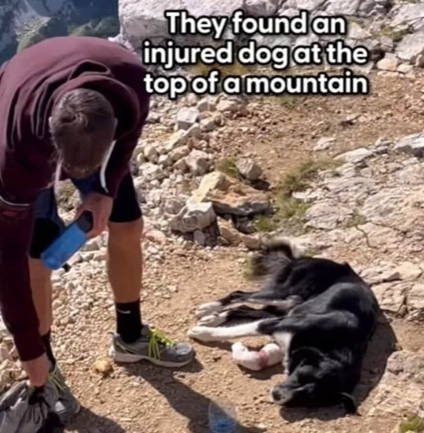 海外のSNSで話題になっているのは、山頂で足を負傷した状況で発見された犬の「Bobo(ボボ)」。