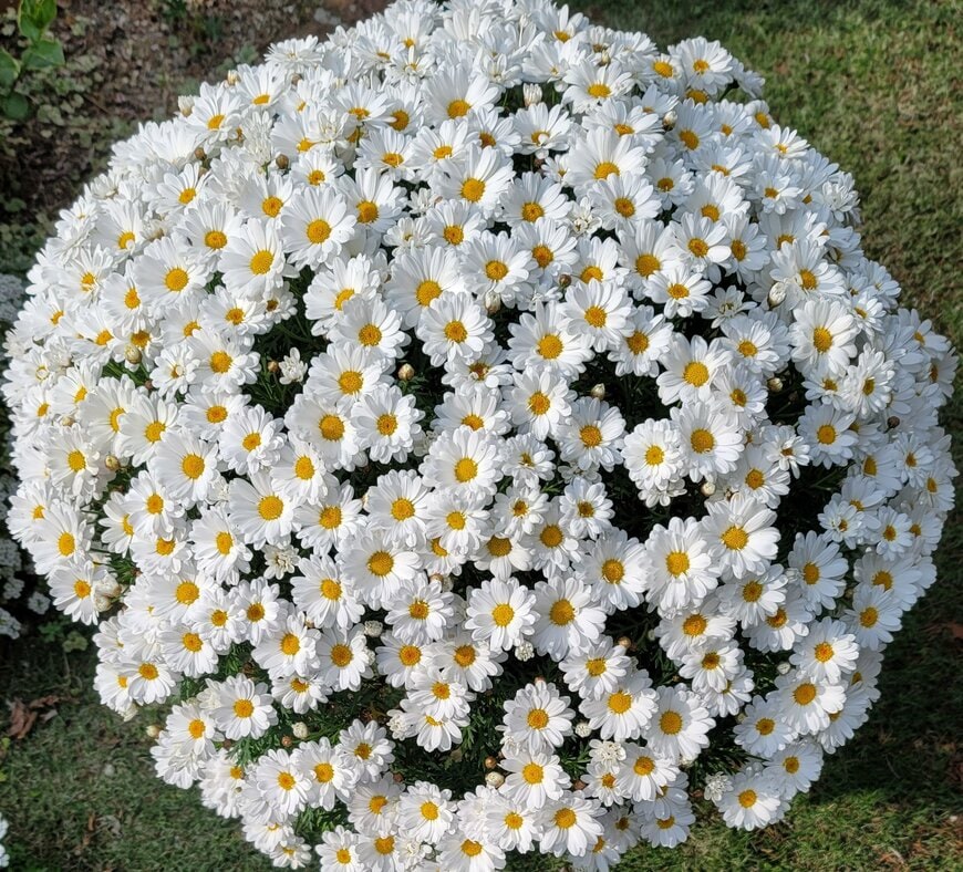 もうひとつのおすすめは、PW(PROVEN WINNERS)のマーガレットです。 こちらも、モリモリとボリュームのある花姿を自然と作ってくれます。
