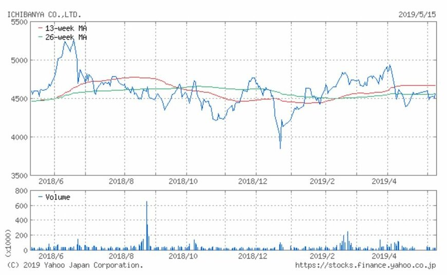 同社の株価は昨年6月の5,300円を天井に下落しましたが、12月26日の3,815円を底に上昇。3月後半にかけ5,000円をうかがう上昇を見せましたが、上昇は続かず下落し、現在は4,400-4,600円付近での取引が継続しています。