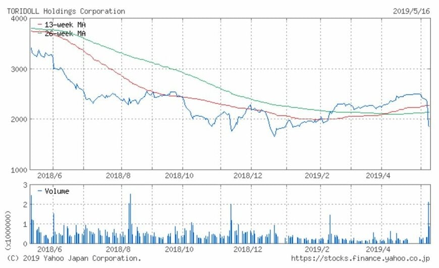 シリーズでお伝えしている「注目小売店月次実績」。今回はセルフ式うどん店「丸亀製麺」他を運営するトリドールHD(3397)の、2019年4月の月次動向及び過去実績、また過去1年の株価動向について振り返ってみましょう。
