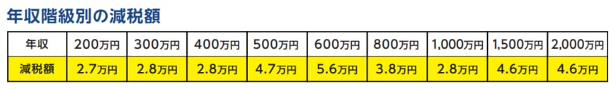 - 年収 2000万円: 減税額 4.6万円
