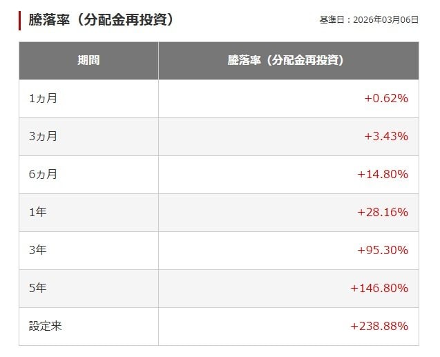 2018年に設定されてからほぼ右肩上がりに上昇しており、設定来リターンは293.97%にまで達しています。
