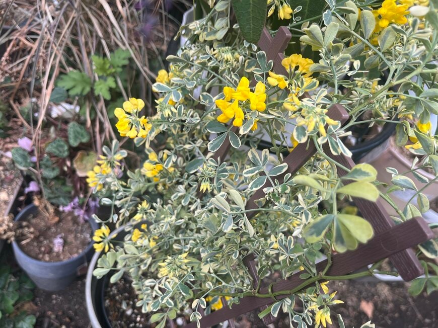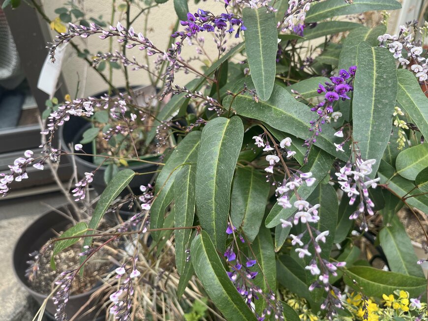 マメ科特有の蝶々のような小花が可愛いですが、こちらも常緑の低木です。