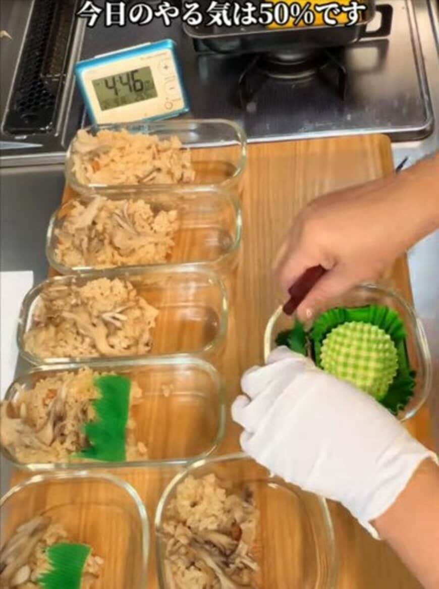 おかずがぎゅっと詰まった「舞茸ごはん弁当」を紹介する動画がTikTokで注目を集めています。