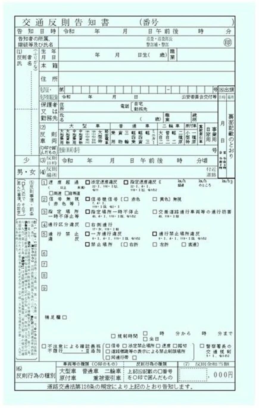 - 信号無視:6000円 ※点滅信号を無視した場合は5,000円