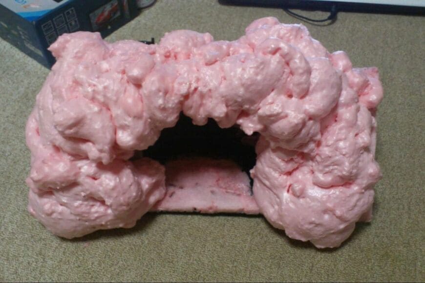 1枚目はもこもことした発泡ウレタンがまるで洞窟の入口かのように形成されており、完成形がまったく想像できませんが…。