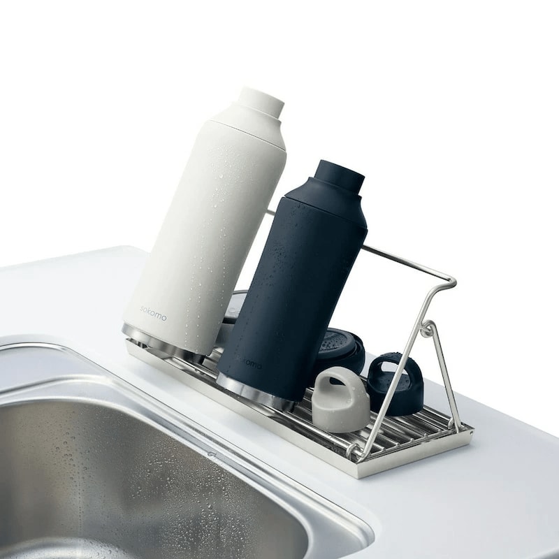 網付きのトレーには、ボトルやフタなどのパーツ類も干すことができます。パーツの紛失を防ぎながら、作業スペースを有効に使えるのもポイント。毎日の洗い物後のひと手間を減らし、家事の流れをスムーズにしてくれる便利アイテムです。