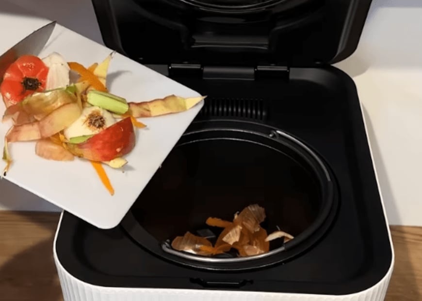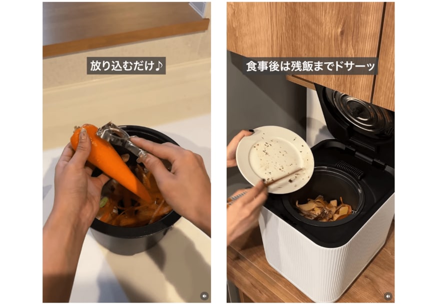 LOWYAの「生ごみ処理機」は、調理で出た野菜の切りくずや残飯などを放り込むだけ。