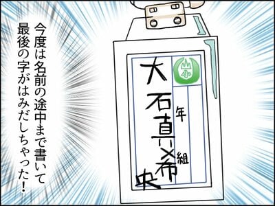 今度は、名前の途中まで書いたところで、字が全部入りきらずはみ出しちゃった!