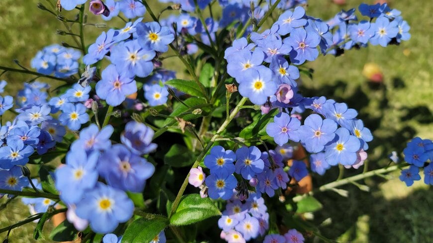 ですが、近年では夏越しの成功率を高めた品種も登場しています。それが、PW(PROVEN WINNERS)の「ミオソティス ミオマルク」です。わが家の庭で花を咲かせる写真とともに紹介していきますね。