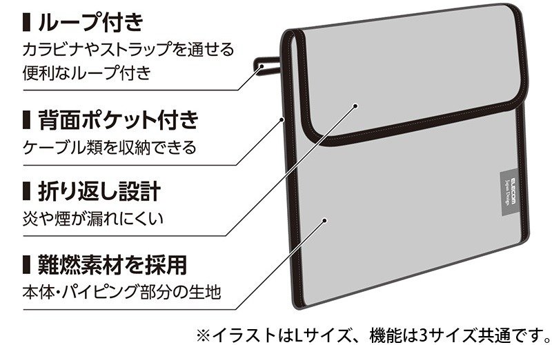 エレコムの「難燃ガジェットポーチ」は、ポーチとしての機能性も優秀です。