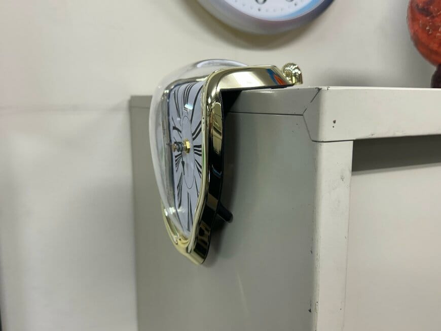 そこに写っていたのは、まるで溶けているように垂れ下がった不思議な時計でした。スペインの画家サルバドール・ダリの代表作「記憶の固執」を思わせるような見た目をしています。