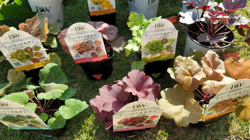 そうした一般的なヒューケラに対し、日なたの庭でモリモリ育つのがPROVEN WINNERS(PW)の「ヒューケラ ドルチェ」シリーズ。日差しに負けないだけでなく、夏の暑さにも強い性質を持つヒューケラです。