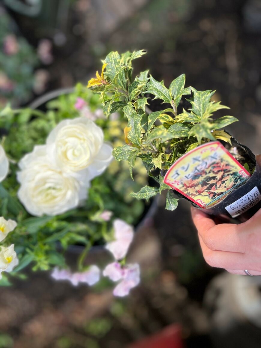 常緑低木であるゴシキヒイラギの斑入りのギザギザとした葉は、シャープでモダンな印象を与えてくれます。