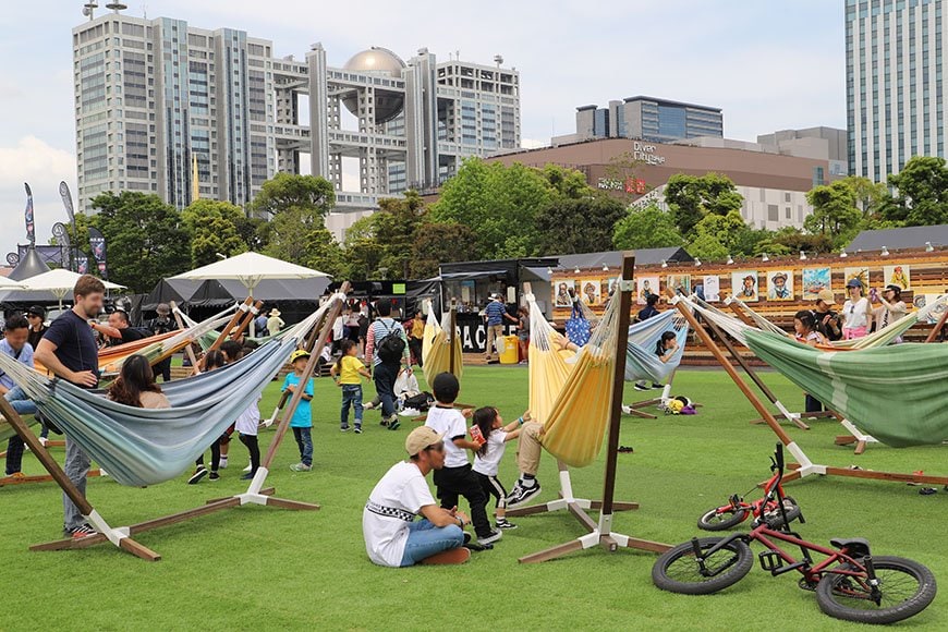 ファミリーでの参加者が多く、BMX、ローラースケート、インラインブレード、スケートボード、キックスケーターなどで会場を移動する姿も目立ち、都心にありながらも独特の雰囲気を味わえる。
