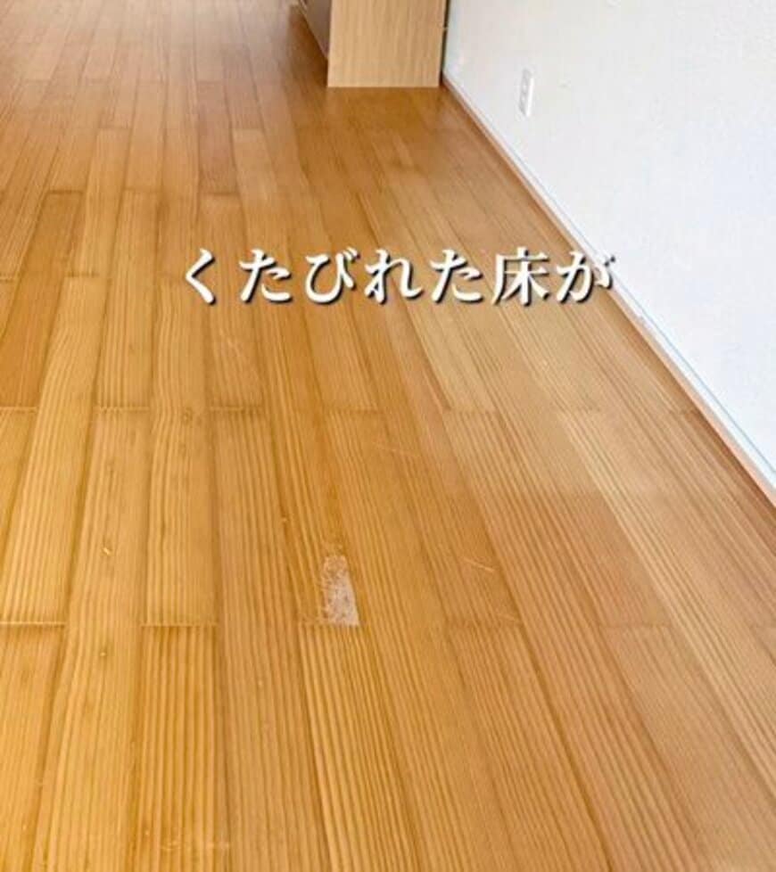 日焼けや傷、滑りやすさが気になるという@ura_kurashiさん家の床。