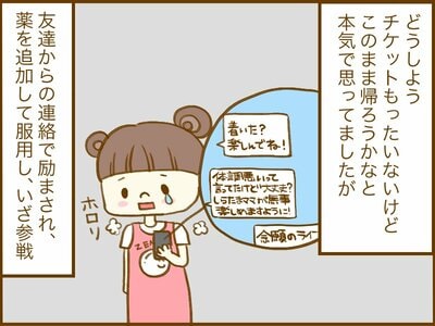 それを見たしらたまママさんは、応援してくれる友人のありがたさを胸に、渾身の力を振り絞り、薬も飲み、気持ちを精一杯落ち着けて、ライブ会場に向かったのでした。