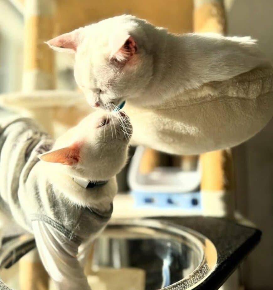 投稿に写っているのは、猫のリリーちゃんとぷるちゃん。