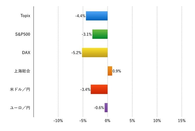 しかし、週次で市場の動きを見ると、日米独の長期金利は低下し、米ドルは対ユーロ、対円ともに約▲3%下げました。米国景気の減速リスクに警戒が出ていると考える方が自然です。その上で、利上げもあるかもしれないと疑心暗鬼になっているのかもしれません。