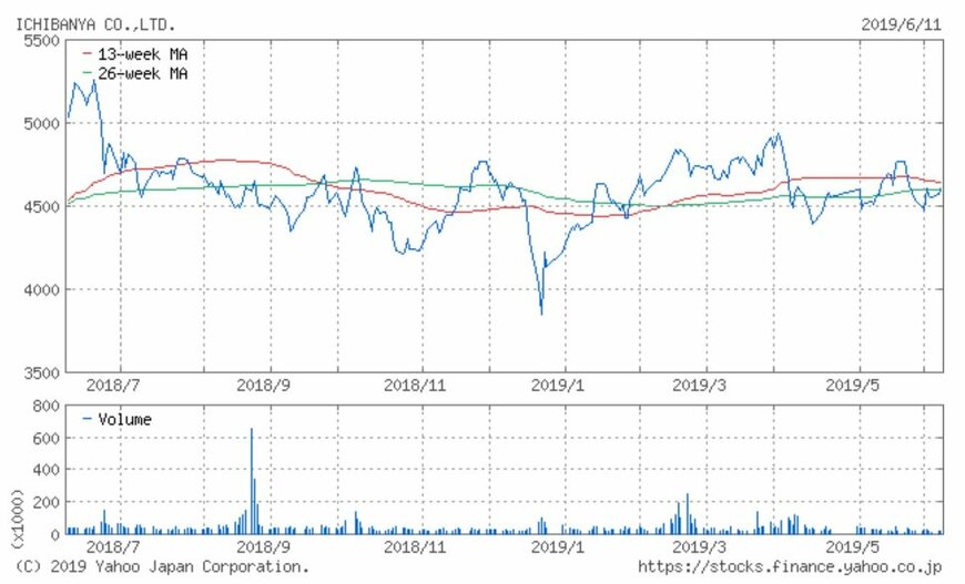 同社の株価は昨年6月の5,300円を天井に下落しましたが、12月26日の3,815円を底に上昇。3月後半にかけ5,000円を伺う上昇を見せたものの失速し、現在は4,600円付近での取引が継続しています。