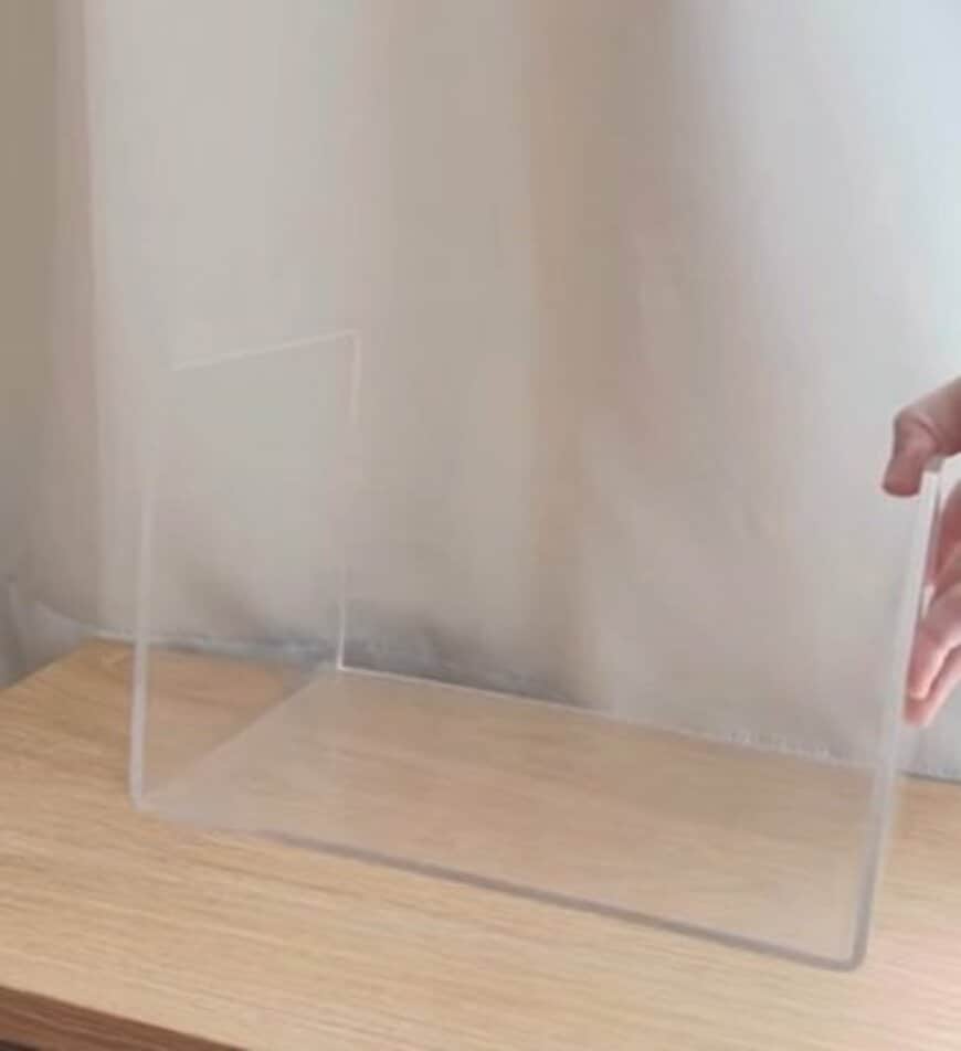 変身前のアクリル仕切棚は、いたってシンプルなもの。これが、どのように変身するのか見当もつきません。