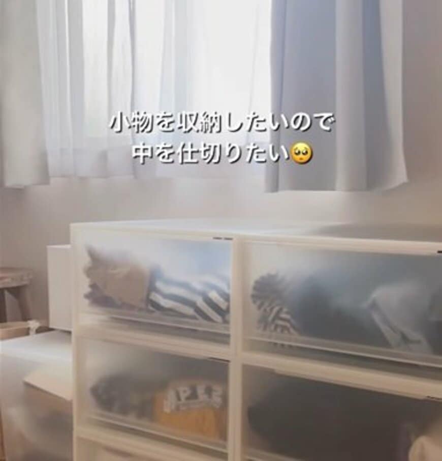 変身前は、子ども服を無印良品のケースに収納していましたが、「小物を収納したいので中を仕切りたい」という悩みを抱えていたそうです。