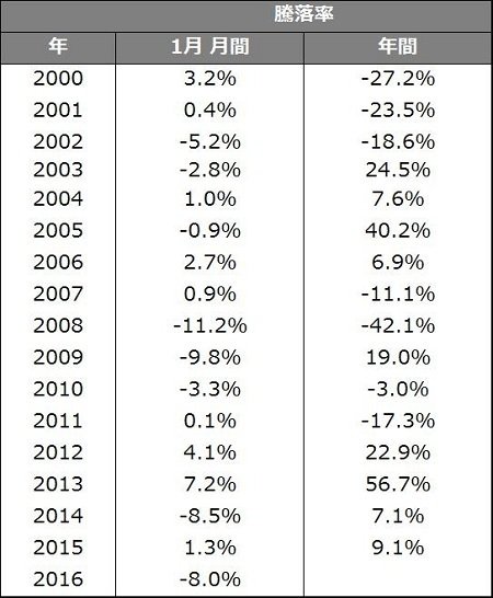 年初には新規マネーが集まりやすいことが一因のようですが、実際のところどうであったかが気になり、2000年から2015年までの実績を調べてみました。