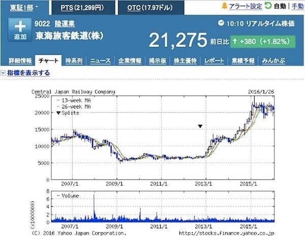 唯一の例外はJR東海。株価は売出価格の最大6.5倍に上昇