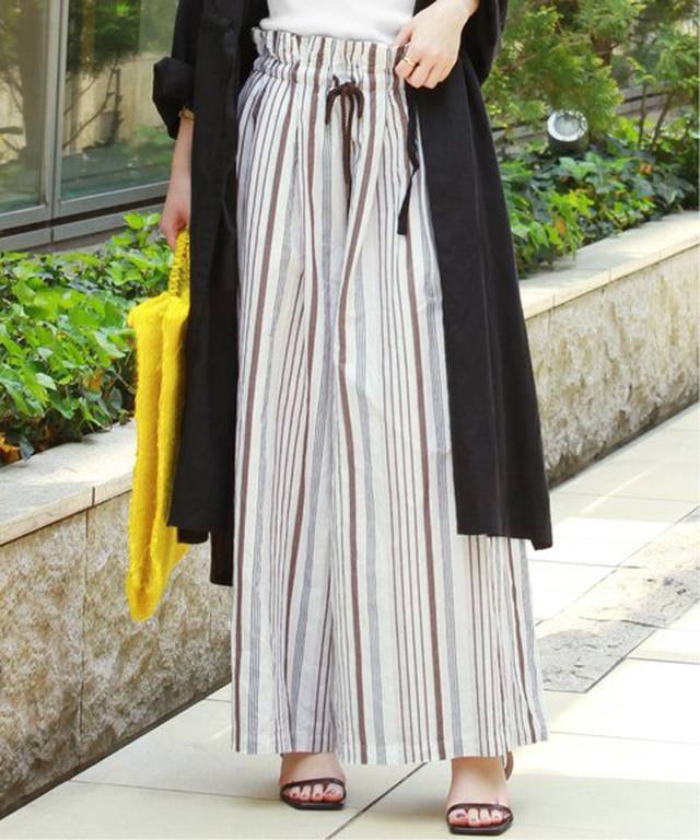 夏らしい麻素材を使用したストライプパンツは、コーディネートのアクセントにぴったり。落ち着いたカラーリングなので、柄アイテム初心者さんにも◎