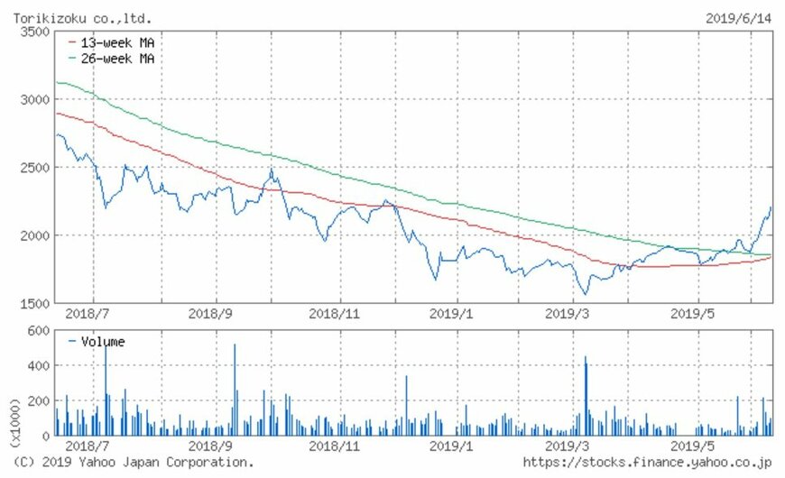 シリーズでお伝えしている「注目小売店月次実績」。今回は焼鳥チェーン店「鳥貴族」を運営する鳥貴族(3193)の、2019年5月の月次動向及び過去実績、また過去1年の株価動向について振り返ってみましょう。