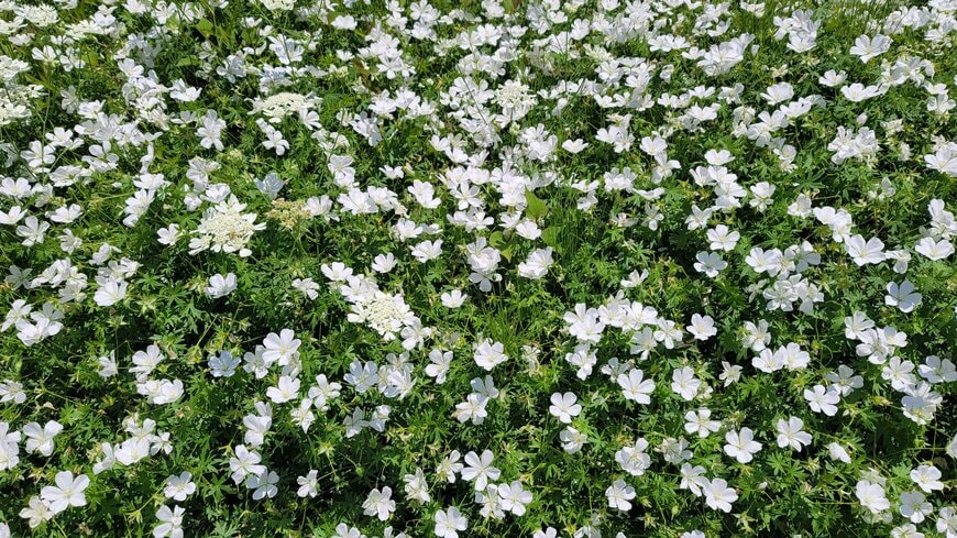 ゲラニウムは、5月から初夏にかけて圧倒的な数の花を咲かせる多年草です。鉢植えでも育てられますが、個人的には花壇への地植えがおすすめです。鉢植え以上に圧巻の花姿を楽しむことができますよ。