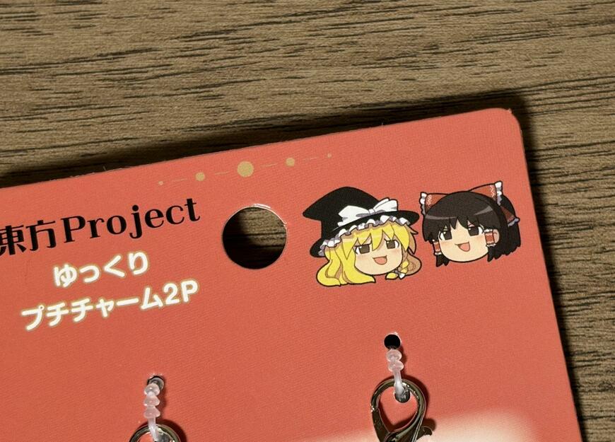 こちらがセリアに登場した「東方Projectのチャームセット」です。ゆっくり解説動画でお馴染みの「ゆっくり魔理沙」と「ゆっくり霊夢」のチャームがセットになっています。