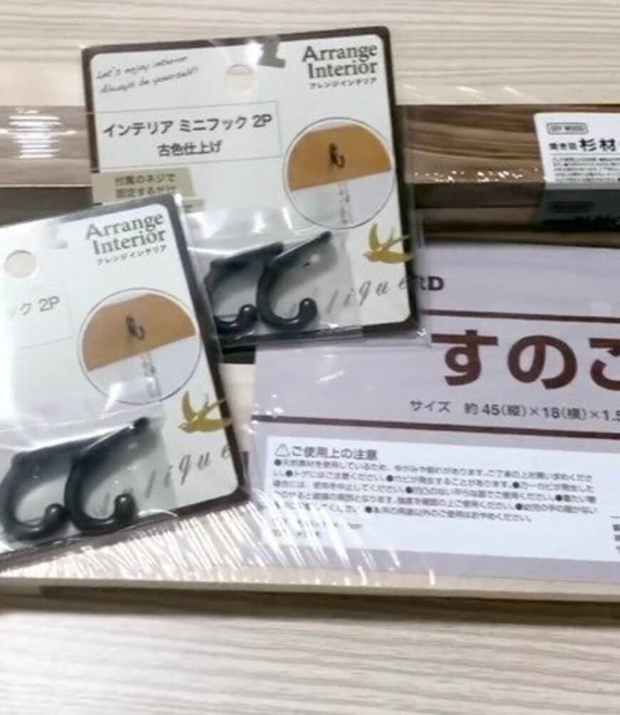 今回の動画では、セリアのすのこ、杉材、ミニフックを使ってキースタンドを作ります。