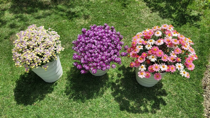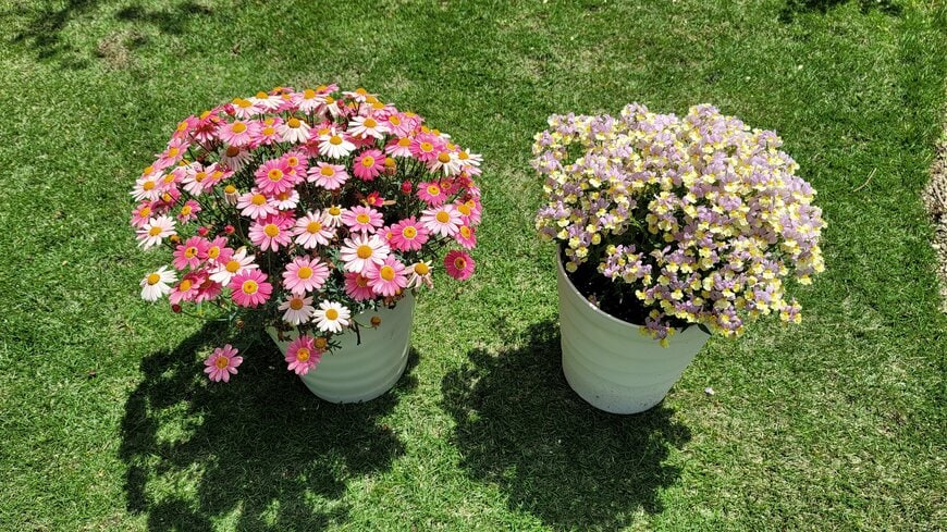 1株で1色のマーガレットもキレイですが、スペースが限られているベランダや玄関などで、複数の花色を楽しむことができる点も魅力ですよ。