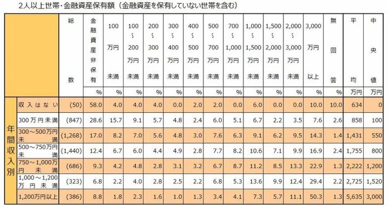 ただ、全体として見れば、年収が高い世帯ほど金融資産非保有の割合が低く、中央値も高い傾向は明確です。
