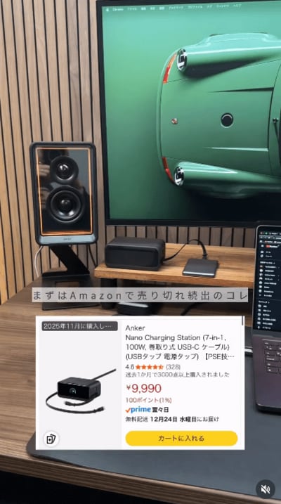 最初に紹介しているのは、Anker「Anker Nano Charging Station(7-in-1, 100W, 巻取り式 USB-Cケーブル)」です。