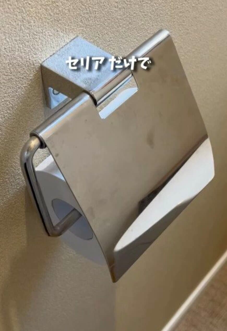 ステンレス製だという@chachamaru_diyさん家のトイレットペーパーホルダー。