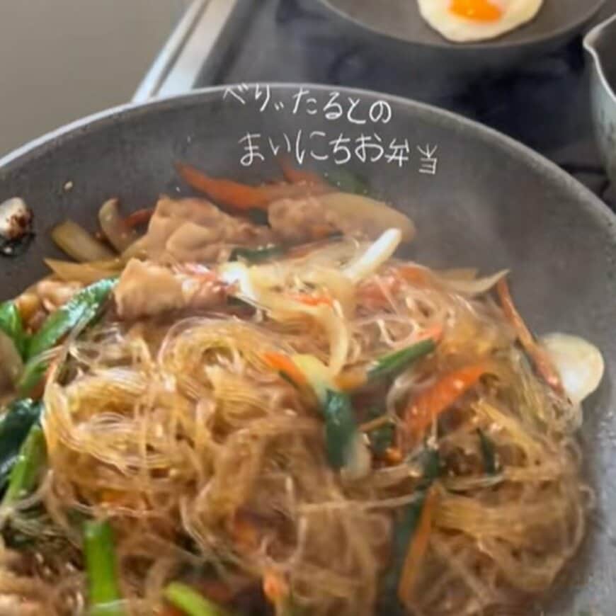 目玉焼きをトッピングした「チャプチェ弁当」を紹介する動画がTikTokで注目を集めています。