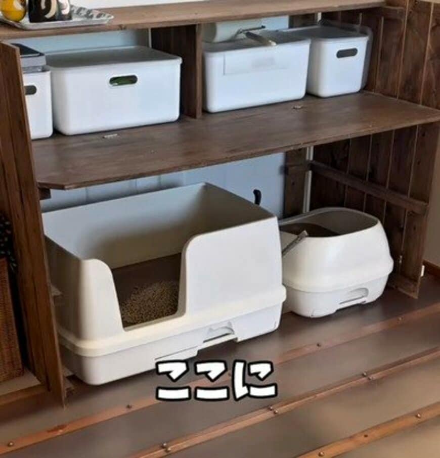 1. 【猫トイレ目隠しDIY】丸見えになっている猫トイレを隠してスッキリとした見た目に
