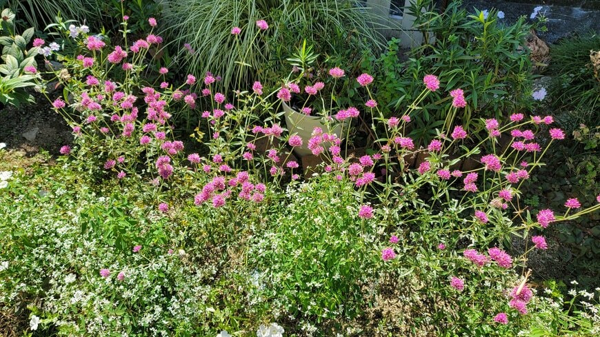 関西地域のわが家の庭で育てている「ゴンフレナ ラブラブラブ」(PW)は、ローメンテナンスで春から秋まで、真夏も休むことなく、本当にずっと咲き続けてくれます。