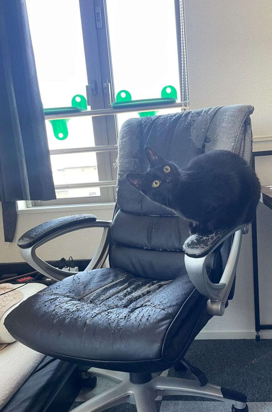 そんなノアールちゃんには、椅子への激しいイタズラをする仲間がいるようです…。